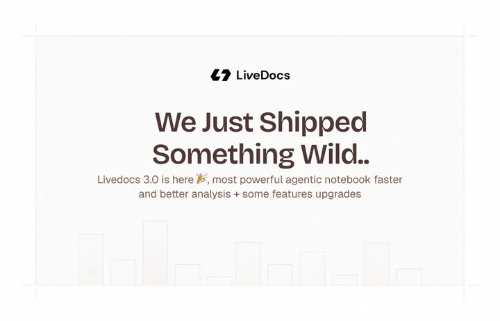 Livedocs 3.0 is here 🎉 Agentic notebook for faster, smoother, automated no-code analysis!
